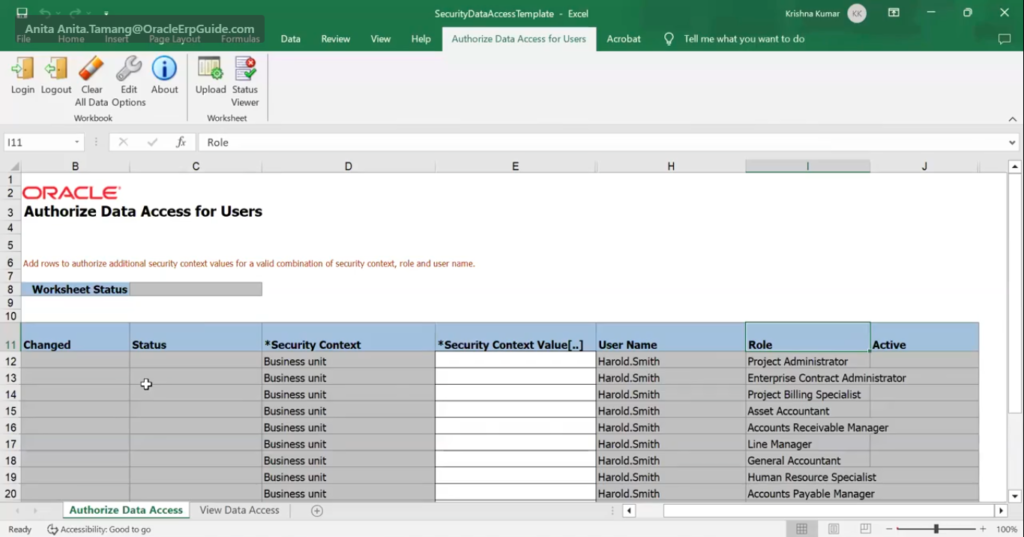- Click on Authorize Data Access – This will download the template and load it.