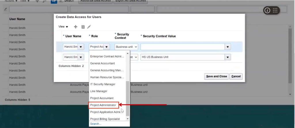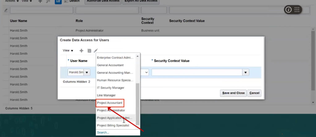 Select the Project Accountant role from the list.