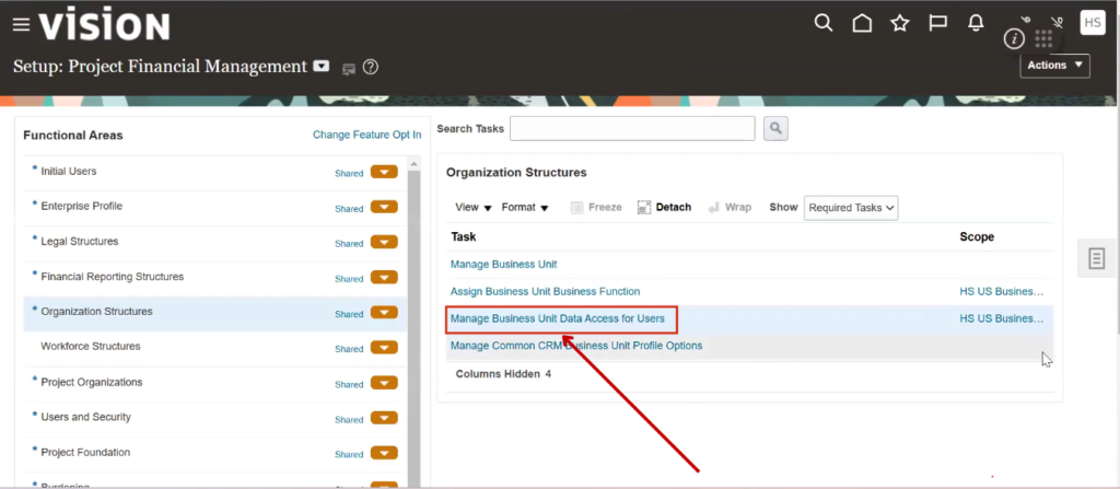 Click on Organization Structures then, click on Manage Business unit Data Access for Users.